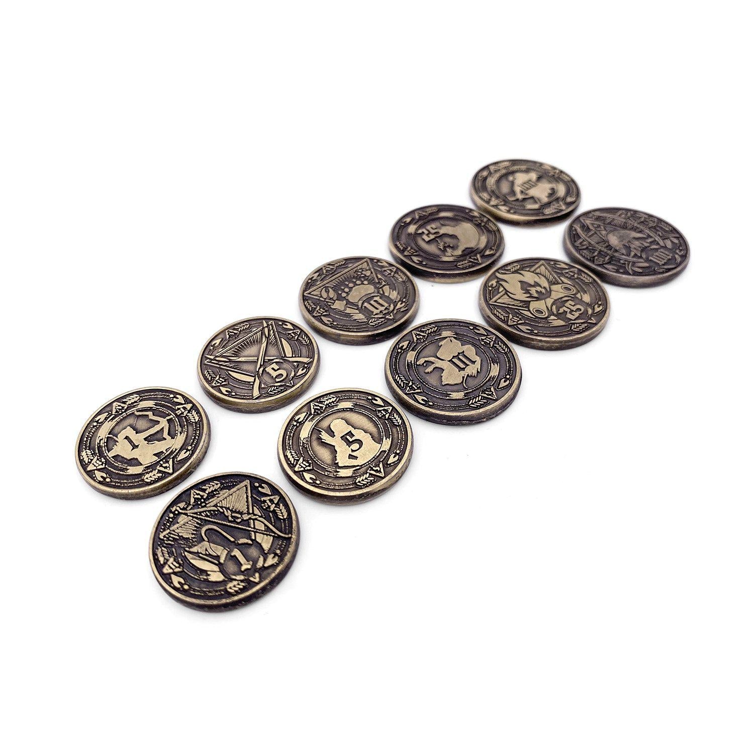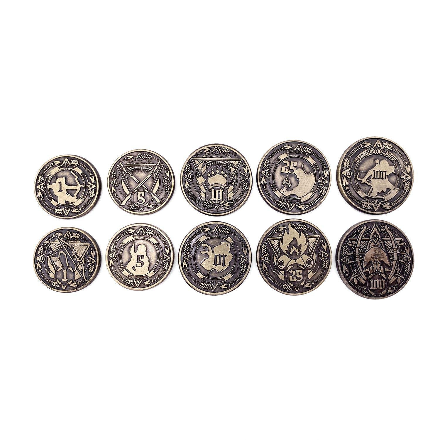 Our metal adventure coins come in sets of 10, that contain pieces 0f 2 of each coin: 1, 5, 10, 25 or 100 in our variety pack. In addition, they are available over 10 unique series/classes: Pirate, Dwarven, Steam Punk, Zombie, Elven, Dubaloons, Roman, Orcs and Goblins, Sci Fi, Dragons and many more, so you can choose the set that perfectly matches your adventures needs.