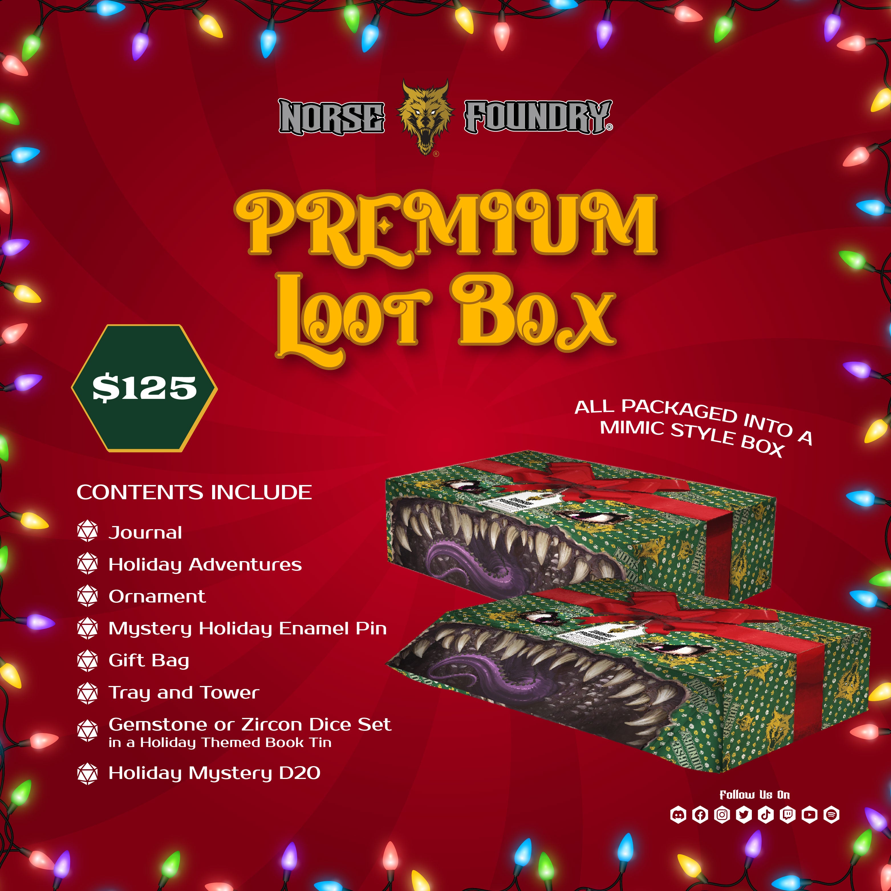 Unwrap the ultimate RPG gift experience with the Premium Loot Box! Perfect for collectors, adventurers, and holiday enthusiasts, this box is packed with exclusive treasures designed to elevate your game night.