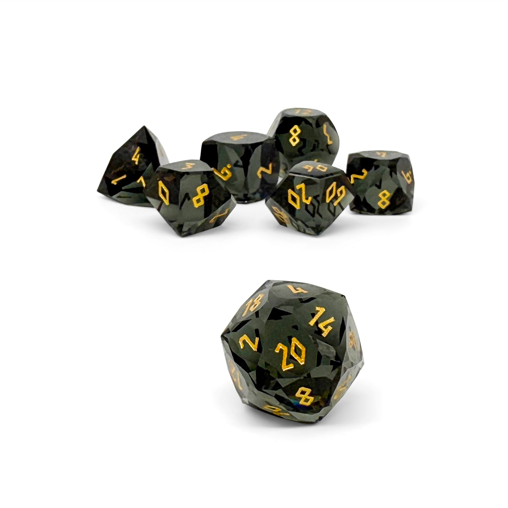 Grey Zircon w/ Gold Font - 7 Piece RPG Set Glass Wondrous Cut Dice