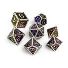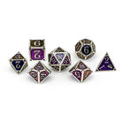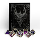 Step into the arcane depths of forgotten lore with the Storybook - Tome of the Forbidden dice set. These dice evoke the feel of ancient manuscripts bound in mystery and magic, etched with tales never meant to be told. The brushed silver frames cradle a swirling mix of purples, greens, and burnished reds, reminiscent of aged parchment inked with forbidden knowledge. Whether unraveling eldritch secrets or embarking on perilous quests, this set will be your constant companion in weaving unforgettable stories at the table.