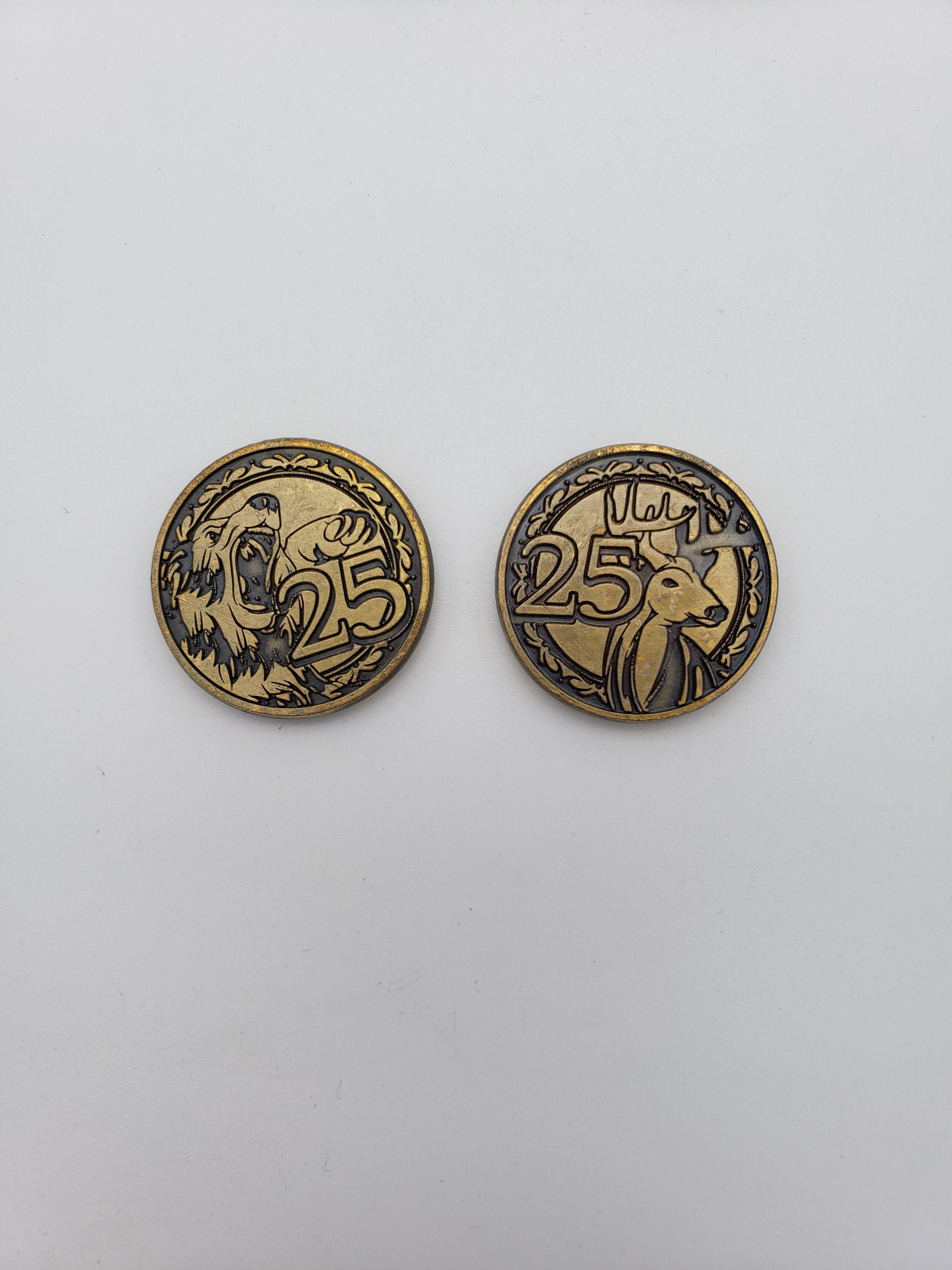 Our metal adventure coins come in sets of 10, that contain pieces of 2 of each coin: 1, 5, 10, 25 or 100 in our variety pack. In addition, they are available over 10 unique series/classes: Pirate, Dwarven, Steam Punk, Zombie, Elven, Dubaloons, Roman, Orcs and Goblins, Sci Fi, Dragons and many more, so you can choose the set that perfectly matches your adventures needs.