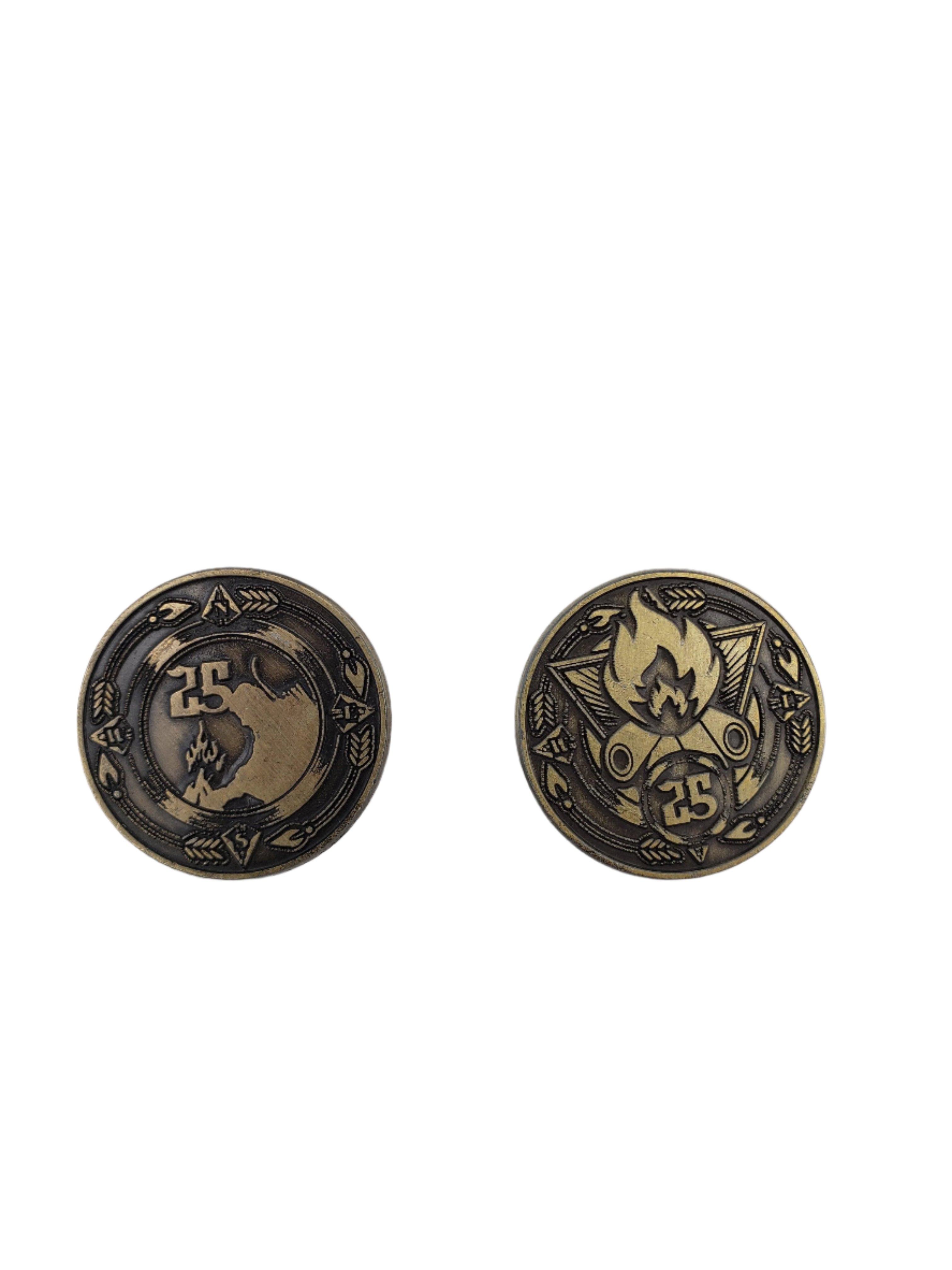 Our metal adventure coins come in sets of 10, that contain pieces 0f 2 of each coin: 1, 5, 10, 25 or 100 in our variety pack. In addition, they are available over 10 unique series/classes: Pirate, Dwarven, Steam Punk, Zombie, Elven, Dubaloons, Roman, Orcs and Goblins, Sci Fi, Dragons and many more, so you can choose the set that perfectly matches your adventures needs.
