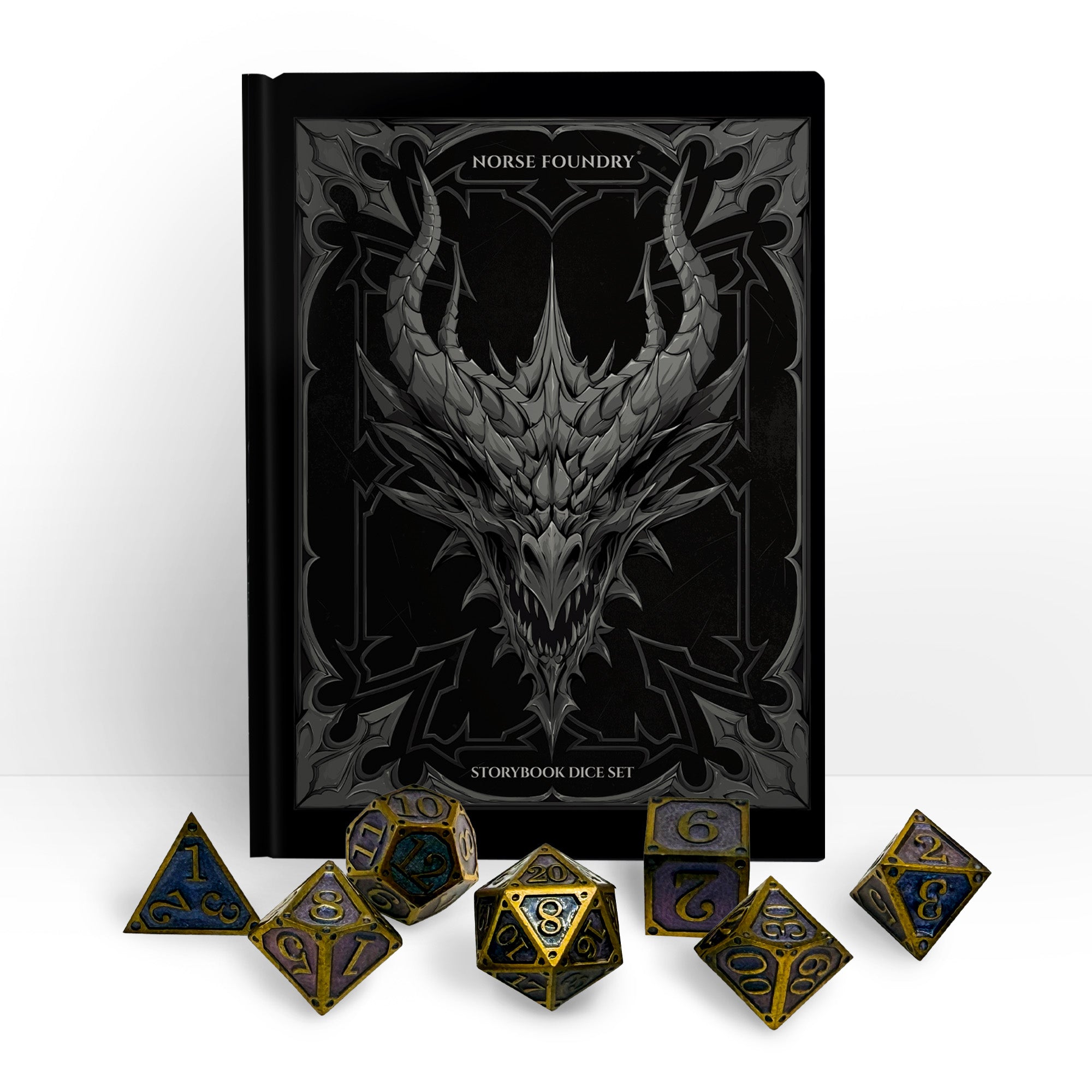 Once a ruler, now a legend. The Storybook – Crownless King dice set bears the weight of lost thrones and shattered legacies. Forged in antique gold and filled with deep royal purple, these dice echo with the grandeur of kingdoms past and the sorrow of power undone. Each roll is a reminder that crowns may fall, but stories of those who wore them endure forever.